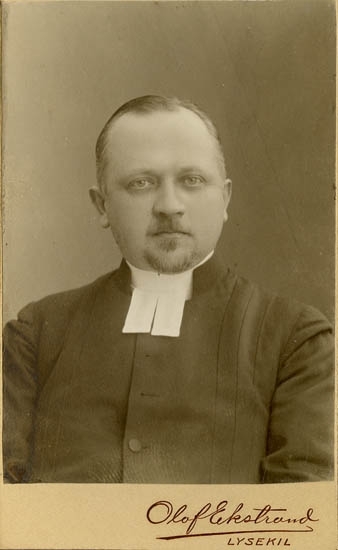Text på kortets baksida: "Kyrkoherde Ernst August Rhedin, Lyse. F. 1874 d. 1937".