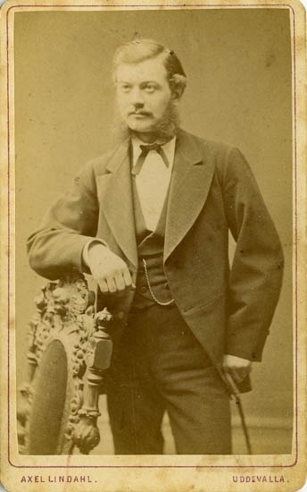 Text på kortets baksida: "Handlaren P. G. Svanberg, Uddevalla. F. 1846 d. 1929".