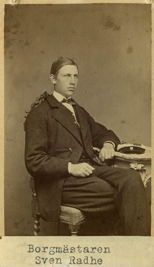Text på kortets baksida:"Borgmästaren Sven Radhe, f. 1848. Uppsala".