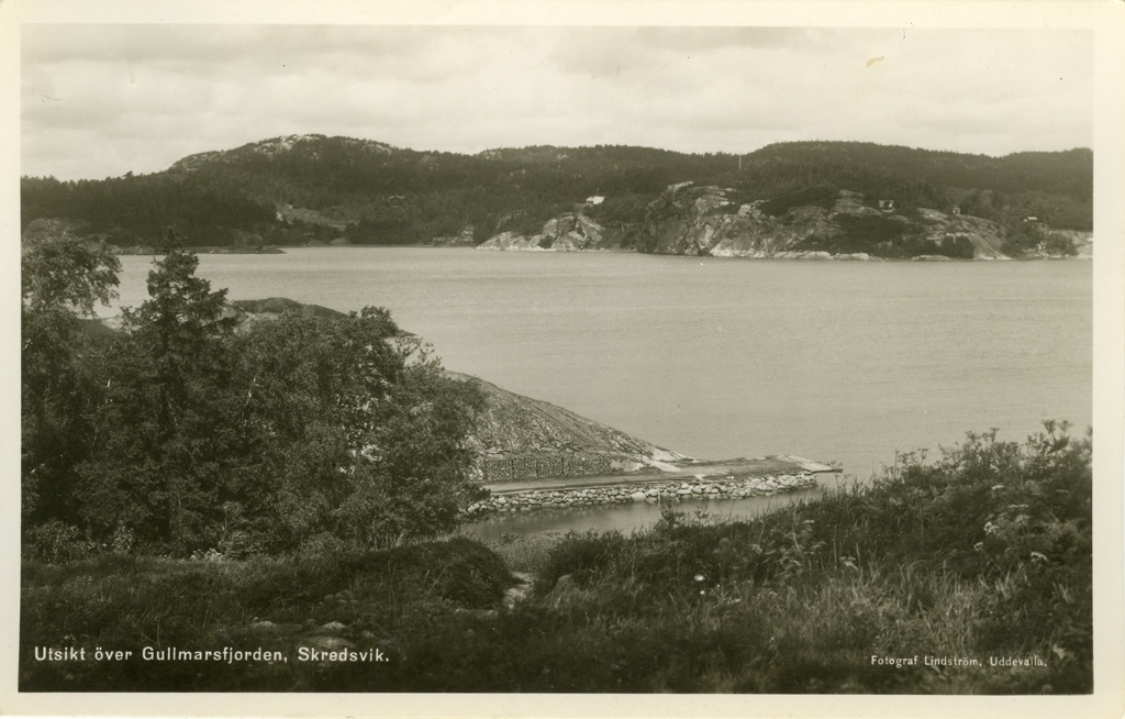 Text på kortet: "Utsik över Gullmarsfjorden, Skredsvik".