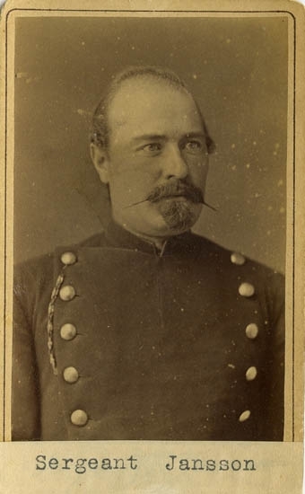 Text på kortets baksida: "Sergeant Jansson, son till Bryggare J.".