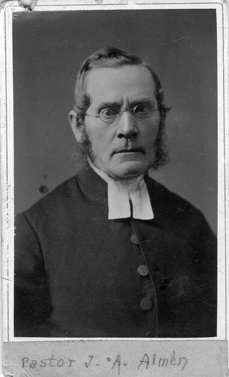 Text på kortets baksida: "Pastor Johan A. Almén".
