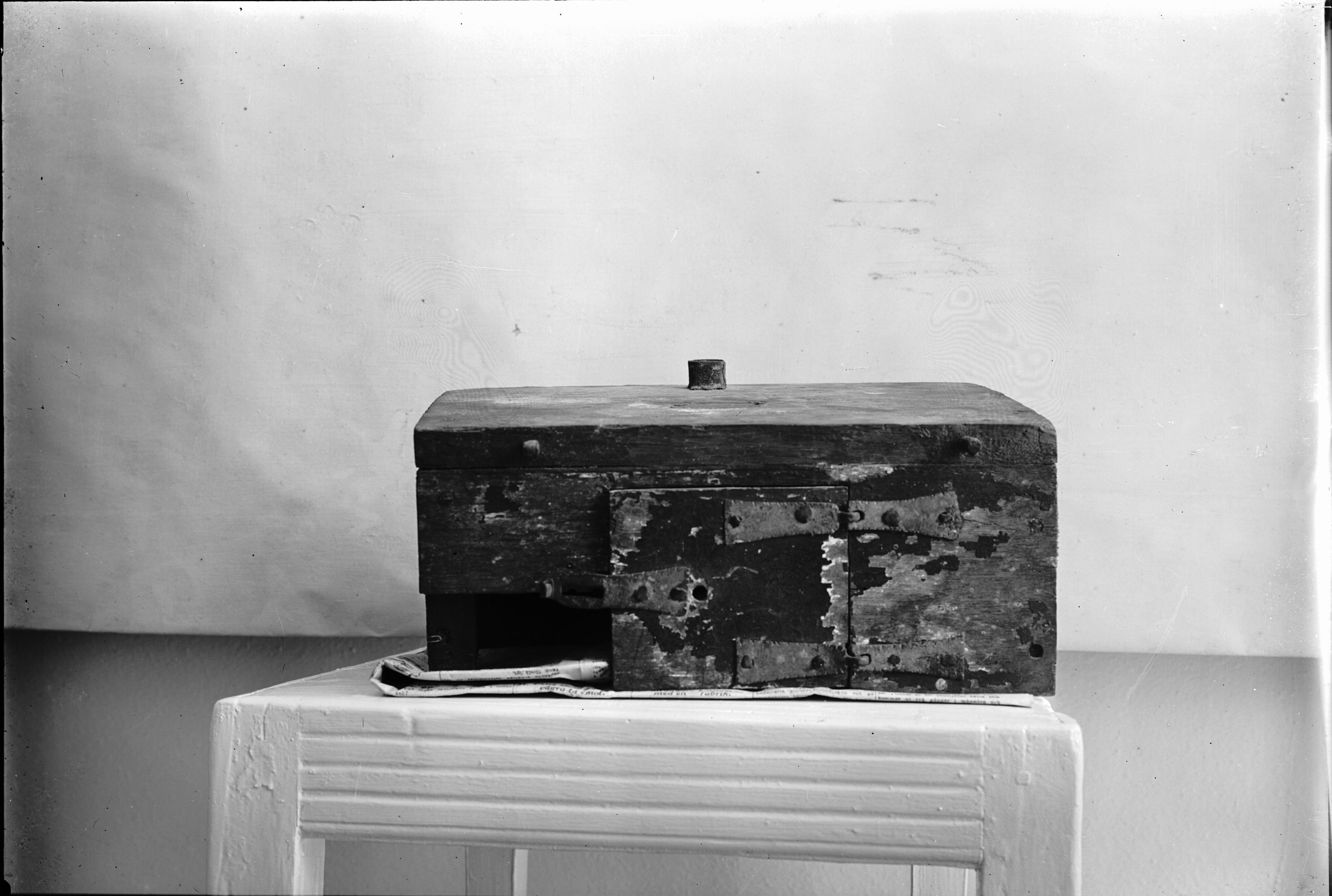 Penningskrin av trä, troligen från 1400-talet.