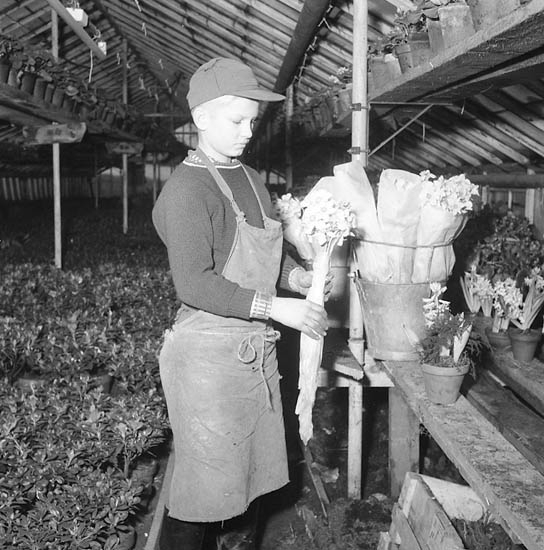 Enligt notering: "Trädgårdsmästaresonen vid Norra kyrkogården. Blommor 21-12-55".