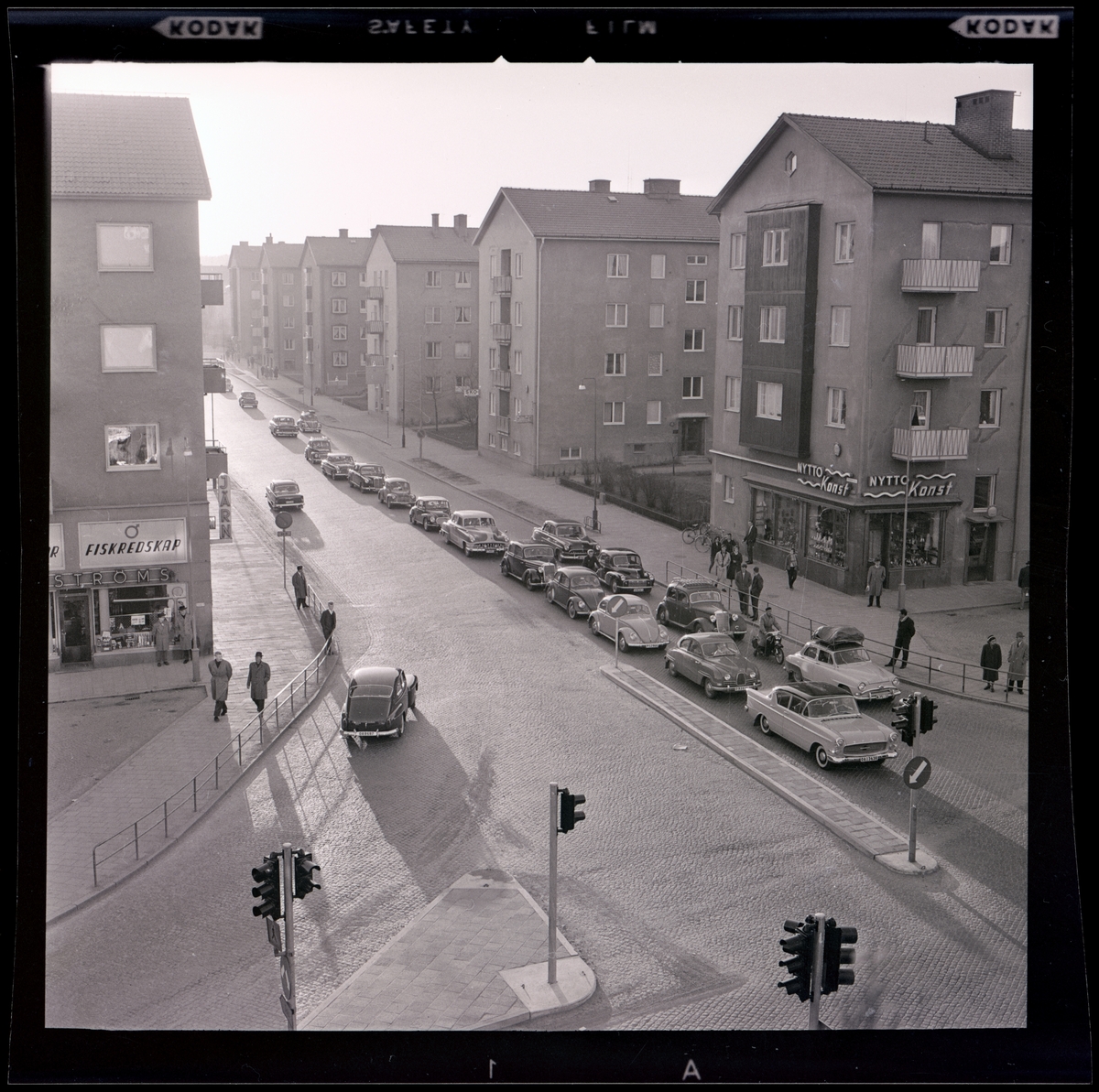 Ändlösa bilkaravaner genom Uddevalla 1960