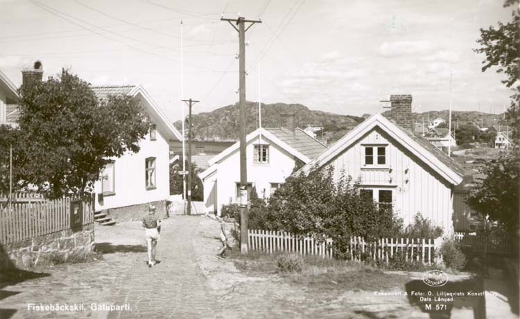 Tryckt text på kortet: "Gatuparti, Fiskebäckskil."