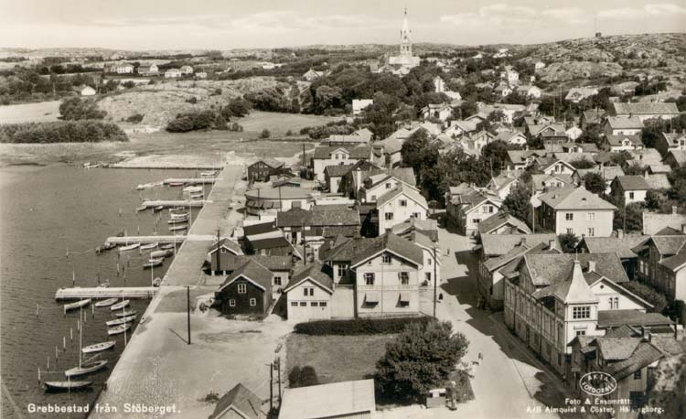 Tryckt text på kortet: "Grebbestad från Stöberget."