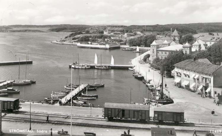 Tryckt text på kortet: "Strömstad. Södra Hamnen."