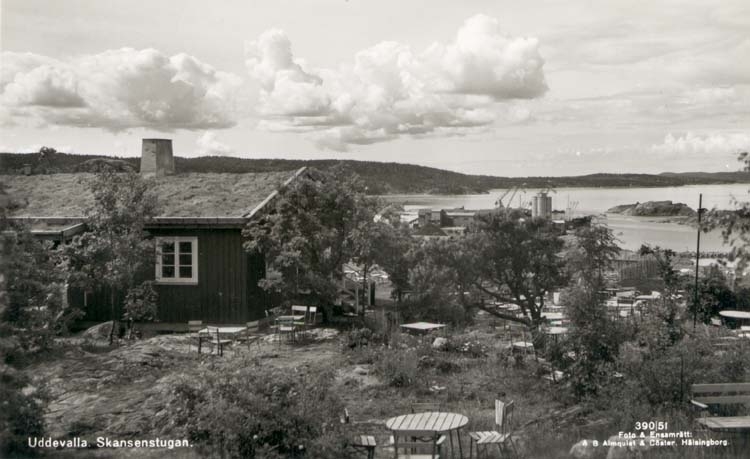 Tryckt text på kortet: "Uddevalla. Skansenstugan."