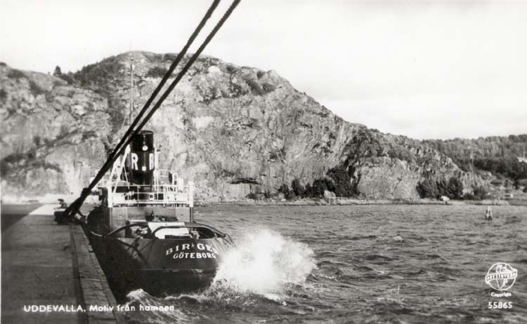 Tryckt text på kortet: "Uddevalla. Motiv från hamnen."