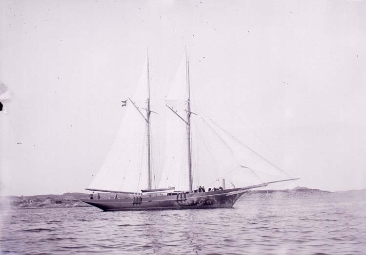 Enligt text som medföljde bilden "Segelbåten Gea".