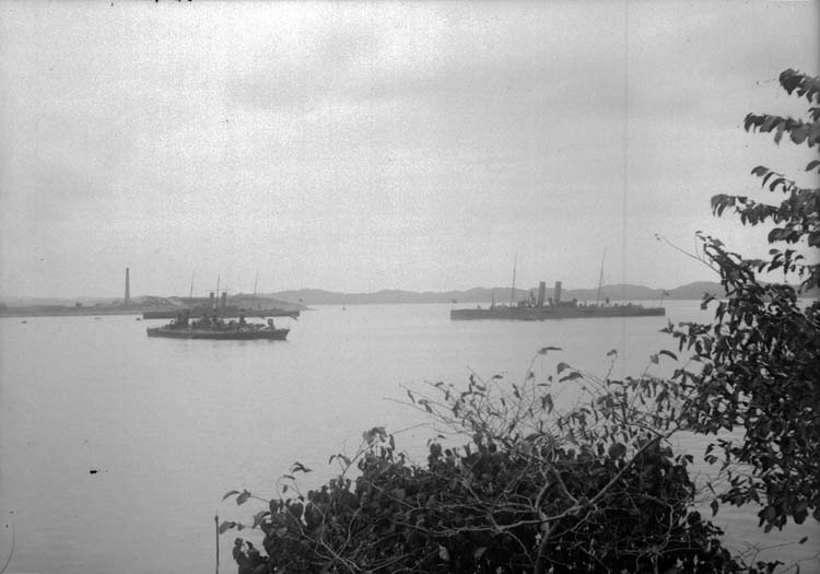Enligt text som medföljde bilden: "Torpedkryssarne Jacob Bagge, Claes Horn, torpedbåtarne Komet och
