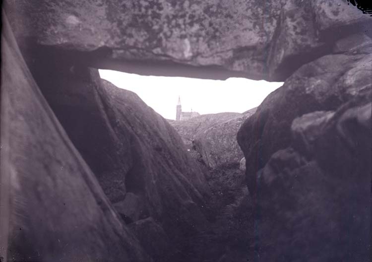 Enligt text som medföljde bilden: "Lysekil. Lysekils Nya kyrka taget under Nålsögat.