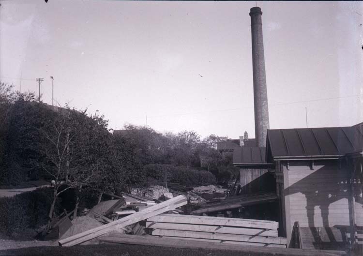 Enligt text som medföljde bilden: "Lysekil. Under arbetet vid Badhuset 16/10 1900.