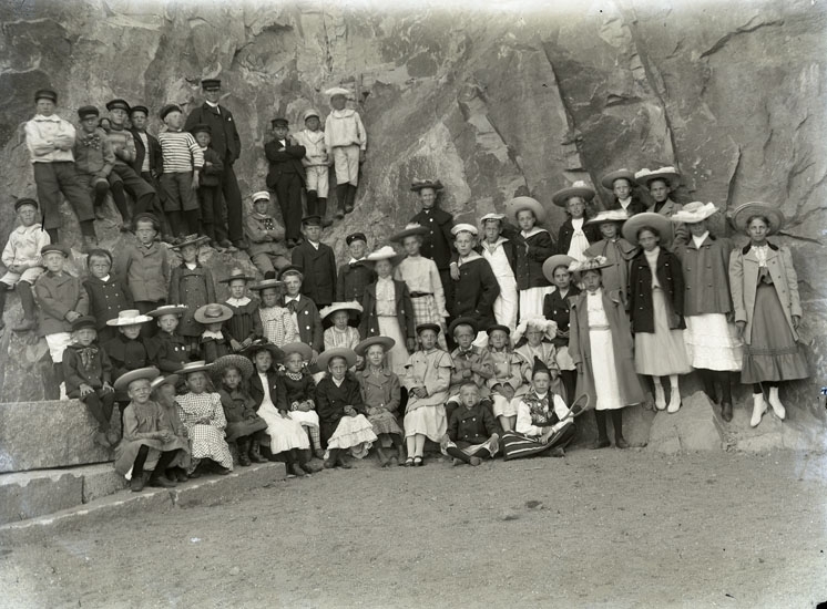 Enligt text som medföljde bilden: "Barnfest vid badhuset".