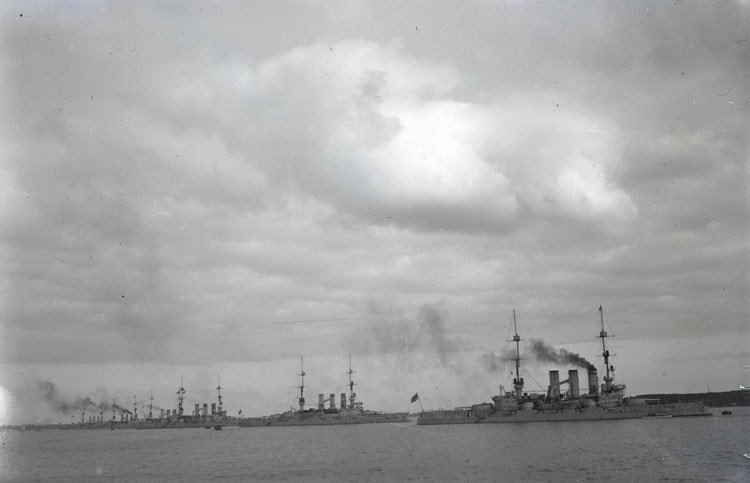 Enligt text som medföljde bilden: "Kiel. Hamnen (Slagskepp) 24/9 1913."