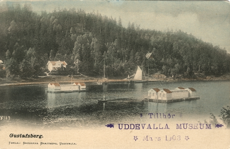 Tryckt text på vykortets framsida: "Gustafsberg."