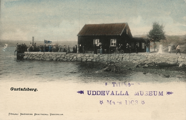 Tryckt text på vykortets framsida: "Gustafsberg."