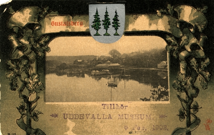 Tryckt text på vykortets framsida: "Gustafsberg."