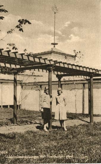 Vykort från "Uddevallautställningen 1928. Konsthallens gård."