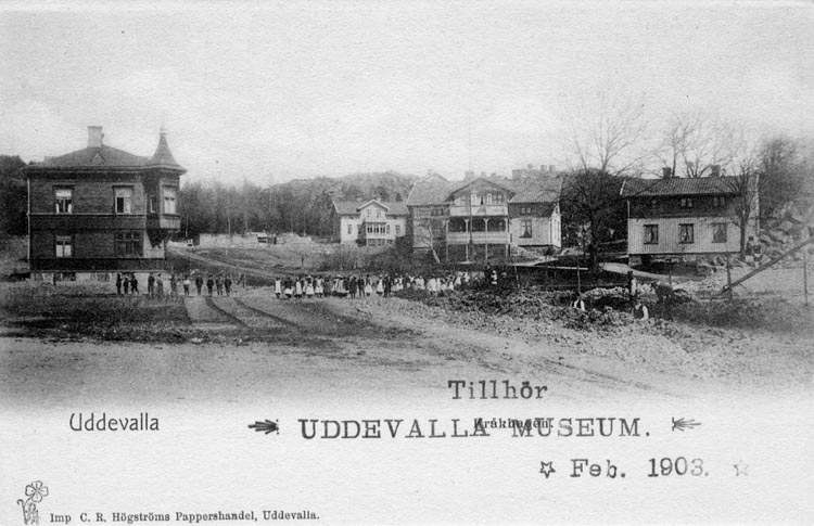 Tryckt text på vykortets framsida: "Uddevalla. Kråkhagen."