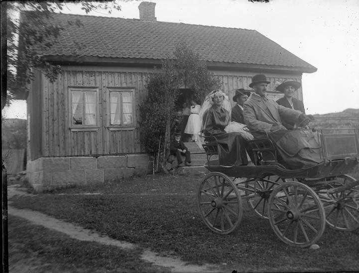 Brudparet Ester och Anders Andersson i en trilla tillsammans med två andra personer