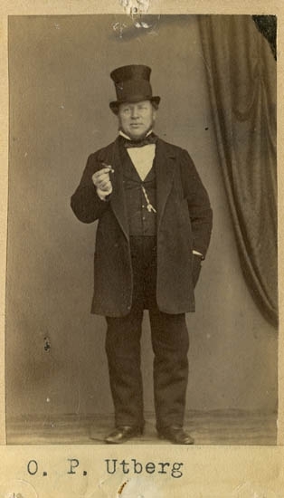 Text på kortets baksida: "Källarmästare, f.d. Handl. O. P. Utberg, f. 1813 d. 1882".