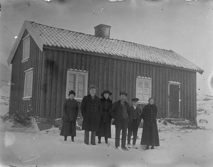 Enligt notering: "Gruppbild framför det lilla huset, Elfsmyren, Hurtigs".