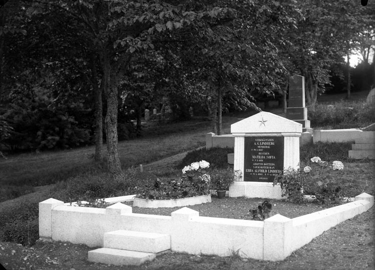 Enligt fotogravens noteringar: "Sjuksyster Ebba Lindbergs grafvård med fosterföräldrars grafvård Munkedal 1926."
