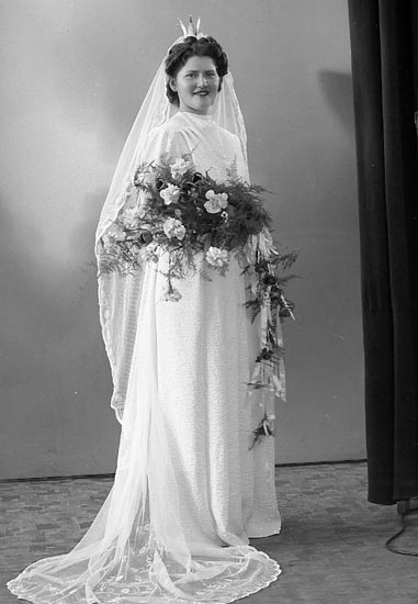 Enligt fotografens journal nr 7 1944-1950: "Olsson, Herr Göran Sjövik, Stillingsön, bruden".