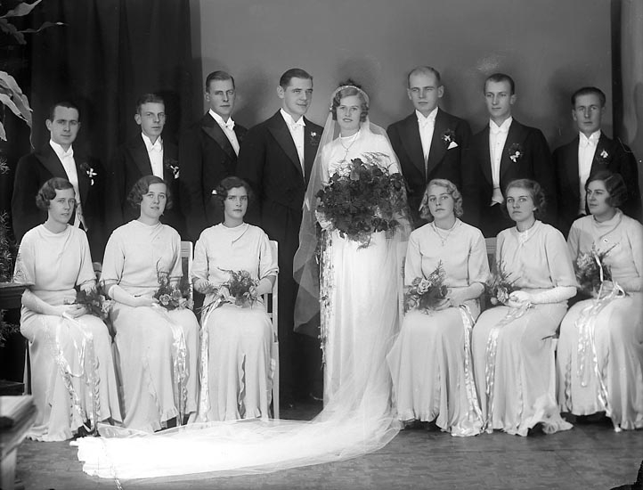 Titel: Enligt fotografens journal nr 6 1930-1943: "Rafstedt, med tärnor o marskalkar Västergård Här".
