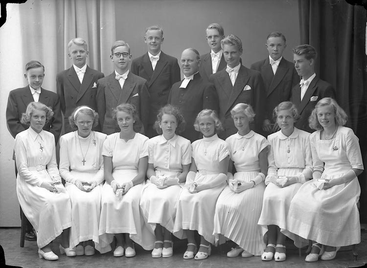 Enligt fotografens journal nr 8 1951-1957: "Privat konfirm. Pastor Hjalmarsson".