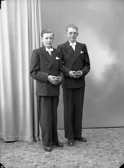 Enligt fotografens journal nr 7 1944-1950: "Olsson, Clas o Karl Gerhard Kyrkenorum".