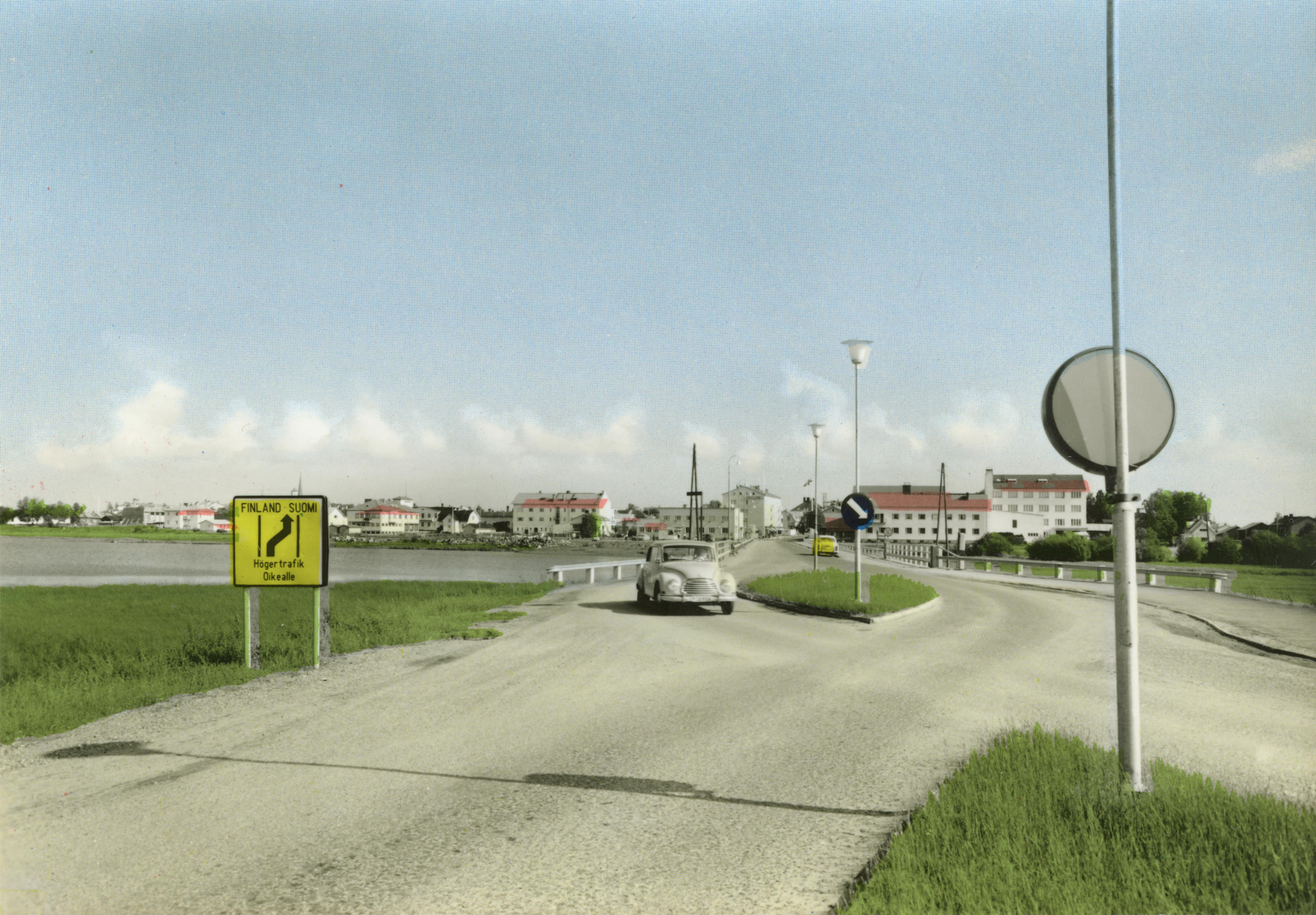 Trafikåtta vid gränsen till Finland. Handkolorerad variant av ac00954.