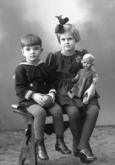 Titel: Enligt fotografens journal nr 6 1930-1943: "Larsson, Gunnel o Sven Ivar, Kyrkenorum".