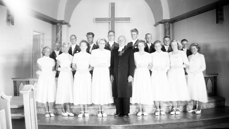 Enligt fotografen: "Stenungsunds konfirmander, Pastor Hjalmarsson".