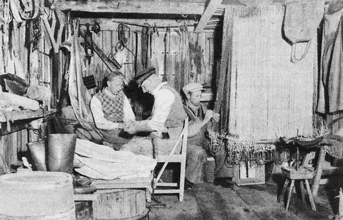 Olof Hasslöf t.v på besök i Axel Andreassons sjöbod på Smögen.