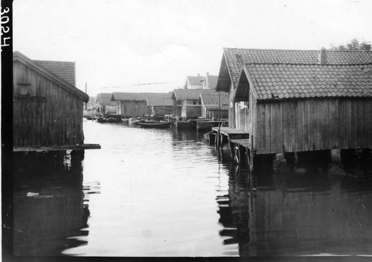 Skrivet på baksidan: Sjöbodar Orust v. led Fisketången