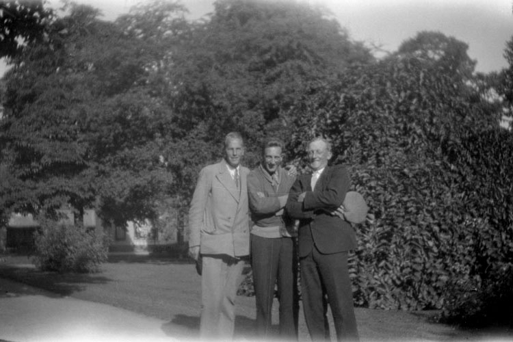 Enligt senare noteringar: "I parken: Gunnar Bjelkert, Johan Börjesson-Eld och Hjalmar Jonsson".