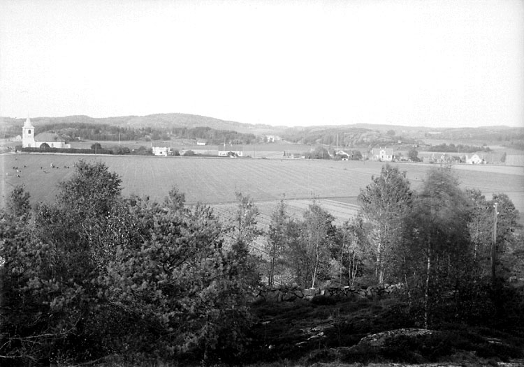 Nya skolan är byggd omkr. 1926 och 'holkarna' på kyrktornet blev borttagna 1939." (BJ)