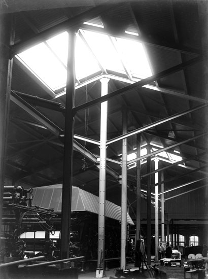 Enligt senare noteringar: "Interiör med pappersmaskin vid Munkedals bruk." (BJ)