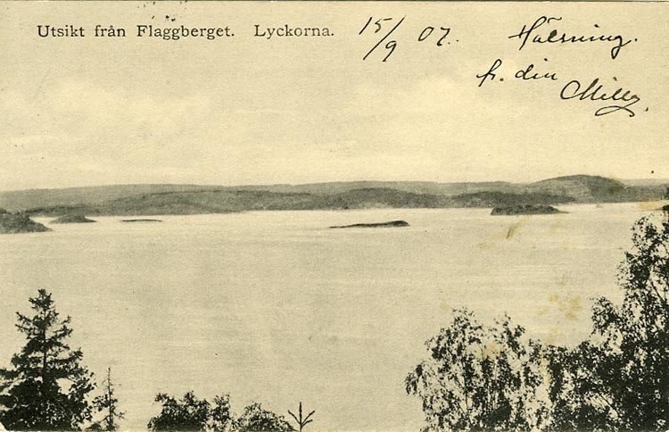 Enligt Bengt Lundins noteringar: "Utsikt från Flaggberget. Lyckorna. Orust".