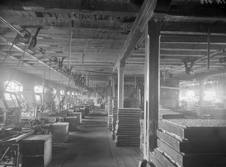Enligt tidigare noteringar: "Interiör från Uddevalla Tändsticksfabrik."