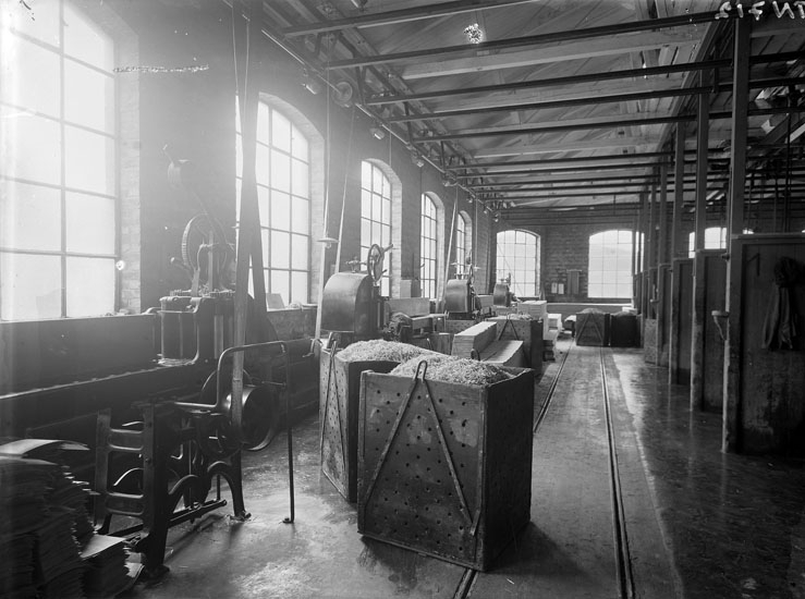 Enligt tidigare noteringar: "Interiör från Uddevalla Tändsticksfabrik. Stickhackning & Impregneringssal".