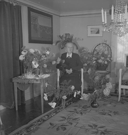 Text till bilden: "Fru Snell, S. Kvarngatan 11. 60 år. 1945.10.19".
