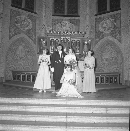 Text till bilden: "Brudfoto i kyrkan. (Lindström). Midsommarafton. 1955"
