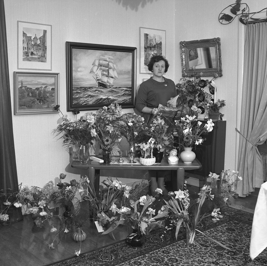Text till bilden: "Fru Svensson, Landsvägsgatan 81. 50 år. 1961.02.10"