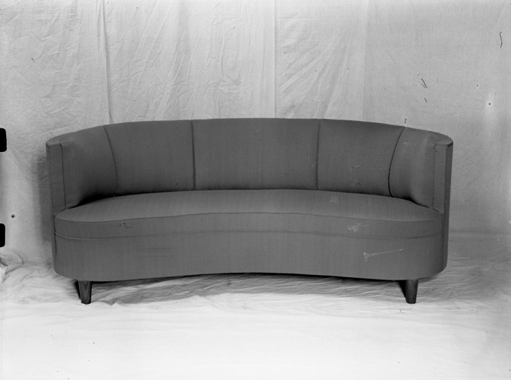 Text till bilden: "Svängd soffa utförd av Arnt Johansson".