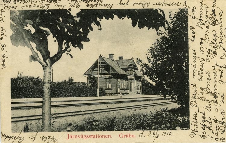 Notering på kortet: Järnvägsstationen. Gråbo.