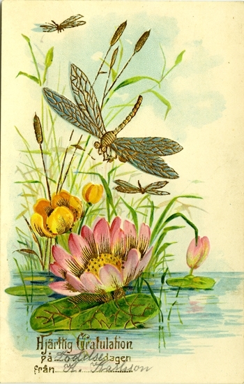 Notering på kortet: Hjärtlig Gratulation på födelsedagen från Karl Karlsson.